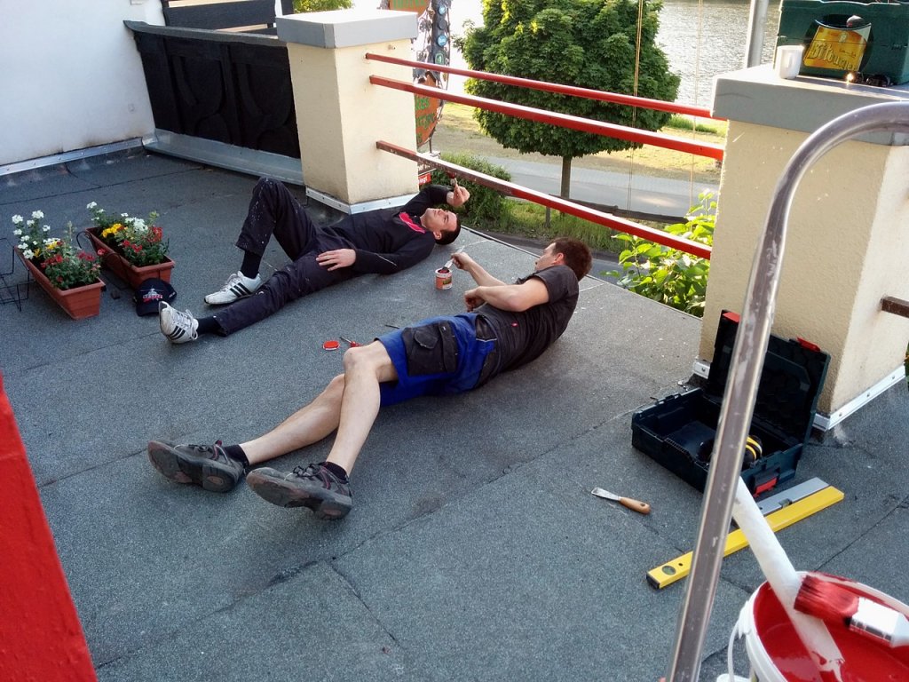 die aktiven Freizeitruderer (Dennis, Frank, Markus, Michael, Olli,…) wollen den Balkon des Bootshauses in Eigenarbeit renovieren.