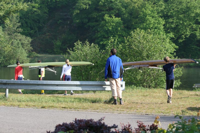 | Dieses Jahr fand das alljährliche Trainingslager in Dreisbach an der Saarschleife vom 25.04. – 01.05.2011 statt. Folgende Personen haben daran teilgenommen: Jochen, Franziska, Marco, Philipp und Lilli Seibert, Marcus Etzkorn, Daniel Berenz, Leon Schöne, Manuel Rötter, Dennis Klinkner, Jens Dorfner, Frank Marxen, Gregor Ammann, Oliver Boos, Christoph Klug mit Ehefrau Kerstin sowie Trainer Fritz Peters. Begleitet wurde das Trainingslager von schönem Wetter und spiegelglattem Wasser, sofern von einem verregneten Nachmittag abgesehen wird. | |