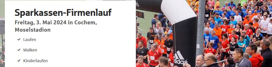 Sehr geehrte Mitglieder der Cochemer Rudergesellschaft, am 03.05.2024 findet der Cochemer Firmenlauf statt. Die Cochemer Rudergesellschaft nimmt hieran ebenfalls teil. Wer sich ins Team der CRG einbringen möchte, kann sich bis zum 25.04.24 im Bootshaus anmelden. Weiterführende Informationen Erforderliche Daten sind: Name, Vorname, Jahrgang, Geschlecht, Wettbewerb, Straße, Postleitzahl, Ort Vereinsinterner Ansprechpartner ist Oliver Boos. Über …